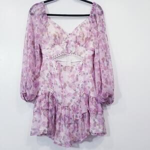 Saints + Secret Floral Puff Sleeve Cut-Out Mini Dress