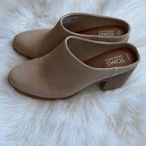 Elegant beige suede mules by TOMS. Perfect for casual outings.