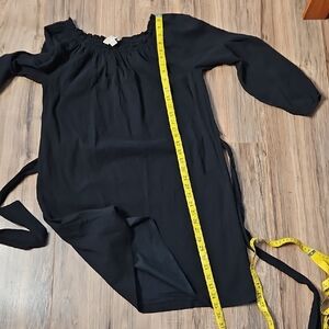 Black off-shoulder design. Long sleeves with a belted waist. Perfect for any occasion. Cotton gauze like material Y4