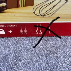 Like new hand mixer with 5-speed settings. Beaters only. Missing frother and dough hooks. Perfect for all your mixing needs.