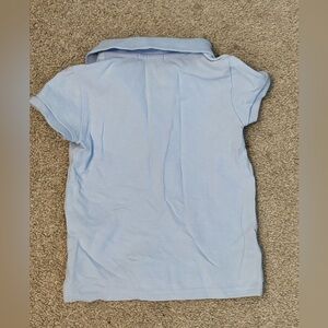 Sky blue polo shirt with classic collar. Features iconic logo. Comfortable and stylish for kids.