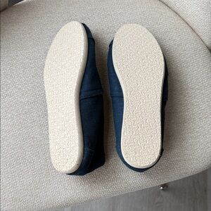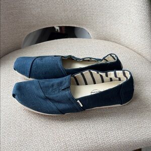 Classic dark blue canvas slip-ons by TOMS. Easy to wear and stylish.