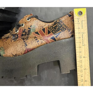 CS T&P Harajuku Platform Shoes UK Punk Print Brown Chunky Lace Up Goth Size Medium, the size description / chart explanation is posted in the photos. The last three photos are screenshots from ChatGPT and are included to better help you understand sizing with the shoes. The condition is new without tags & they may have a few slight scuffs from storage. They are unworn.