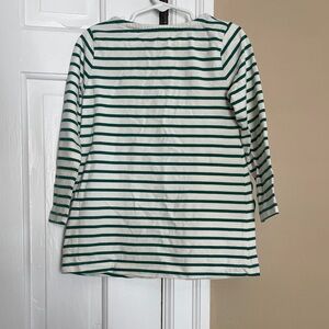 Adorable striped A-line Mini Boden dress with colorful hedgehog patch pockets and matching leggings. Features long sleeves and button details on the shoulder.