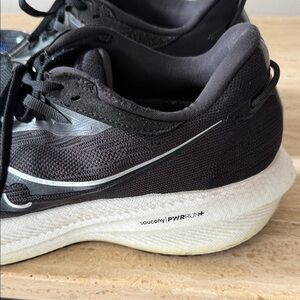 Sleek Saucony triumph shoes in black with white detailing. Ideal for running. Gently used as shown in photos. Shoes have been cleaned and sanitized size 11 men’s
