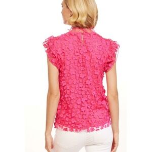Eva Franco Vixen Top in Orchid Petal Hot Pink 3D Floral Applique Ruffle Size 4