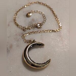 Crescent Moon Necklace, Gold Tone and Crystals