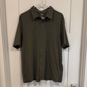 UNIQLO Men's Airism Short Sleeve Button Down Olive Green Shirt XXL