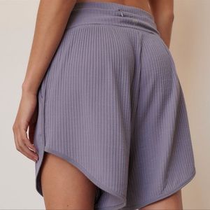 Free People Movement | Can’t Handle This Short in Blue Granite | Small New with Tag. Tie socket. Laced placket. Ribbed. Two hip pockets. Small back zipper. Small back zipper pocket. High waisted.
