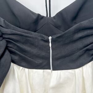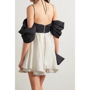NWT Rasario Linen Off Shoulder Mini Dress, Black/White/Crystal, FR36/US4