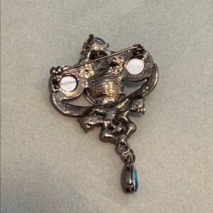 Vintage gorgeous blue brooch gun metal tone