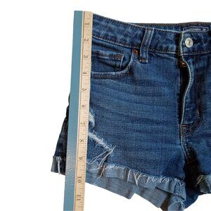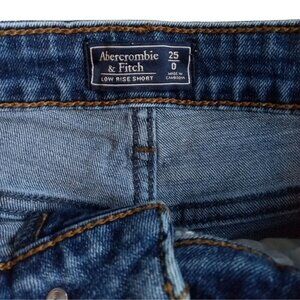 Abercrombie & Fitch Harper Low Rise Shorts in size 25/0. Distressed stretch design in blue, featuring a stylish loose cuff for women.