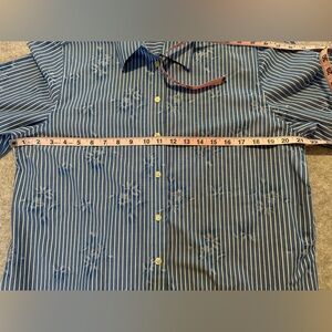 Orvis Men's Blue and White Striped Shirt (See Measurements)