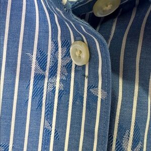 Classic blue and white stripes with floral print. Button-down design. Ideal for casual wear.