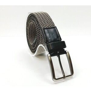 TOMMY BAHAMA Two Tone Stretchy Woven Belt Leather Trim Beige Black Sz S/M 30-36"