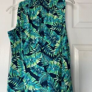 Stylish sleeveless top with a bold leaf pattern. Perfect for a tropical vibe.