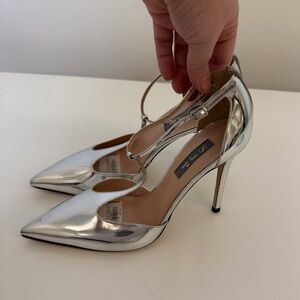 Size 7 in Dr. Martens (fits a 7.5 US for me!) and like new. Saw these at Vogue's "Fashion World" on all the models and grabbed them. Now sold out everywhere but here's your chance to rock them.
