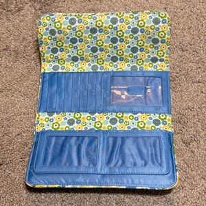 Vera Bradley Blue and Green Floral Tri fold Wallet with Magnetic Closure