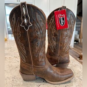 Justin Boots Women’s Western Cowboy Dark Brown Heeled Boots