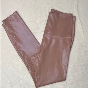 Stylish shiny pink leggings. Perfect for workouts or casual wear.