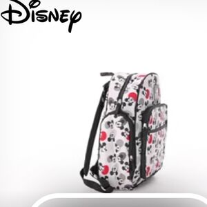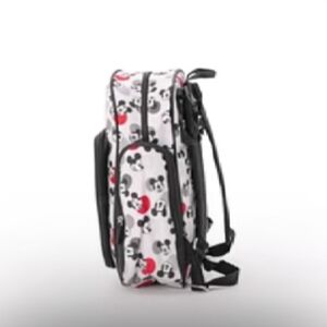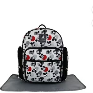 This stylish Mickey Mouse diaper bag set features a fun design with black, red, and gray colors.