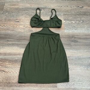 This elegant olive green dress features a stylish cut-out design, perfect for any occasion. Its unique style and comfortable fit make it a must-have addition to your wardrobe.