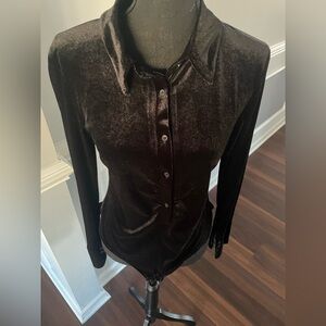 Chic black velvet bodysuit with long sleeves. Button-up front adds elegance. Perfect for pairing with jeans or skirts. Never worn.