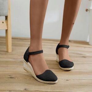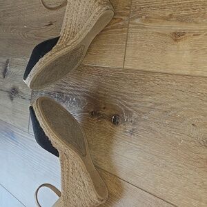 Black and Tan Espadrille Wedge Sandals 6.5 Women Sandals