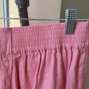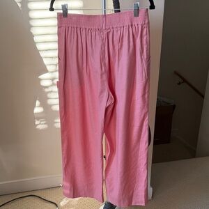 Chic pink crop pants with elastic waste band. Relaxed fit for comfort.