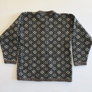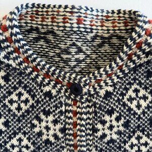 VINTAGE 80s Nordic Wool Cardigan Sweater Navy Blue L/XL