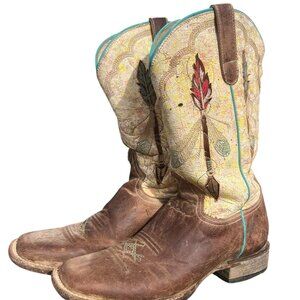 Roper Western Boots Women's Size 7.5 US Arrow Feather Embriodered Tan Leather Th