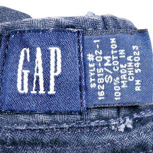 Vintage Gap bucket hat, style #162815-02-1, made circa 1999–2000. Dark blue cotton with tan trim and subtle tonal embroidery on the front reading “Reg. Mfg. G/99-00.” Size S/M (fits approx. 7 1/4–7 1/2). 100% cotton with stitched brim and soft structure. Light wear consistent with age; no stains or damage. A classic Y2K-era accessory with understated branding and utilitarian appeal — ideal for collectors of late 1990s mall fashion or minimalist streetwear.