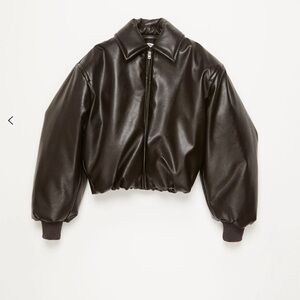 Chic dark brown bomber jacket by Acne. Features a sleek design with a classic collar and zip closure. Perfect for a modern look. This is a FR 38. Brand new without tags only worn a few times
