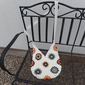 Crochet Floral Hobo Tote Knit Granny Square Boho Lined 'By Masal' Hippy Bag NWOT