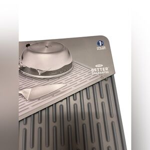 Durable silicone mat with ribbed surface. Ideal for drying dishes efficiently.