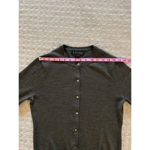This Brooks Brothers women's dark green cardigan sweater is a cozy and classic addition to your wardrobe. Made from 100% Merino Wool, this cardigan features long sleeves, perfect for the winter, fall, and spring seasons. The tight-knit fabric and button accents add a touch of elegance to this versatile piece, suitable for casual occasions. This sweater is a timeless and high-quality choice for any city or classic-inspired look. Like new condition. Dry clean only.
