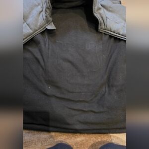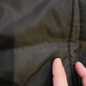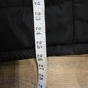 Stylish black and gray puffer vest with a sleek design. Perfect for layering.