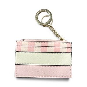 Chic Valentino card holder in pink and white. Perfect for organizing your essentials with style.