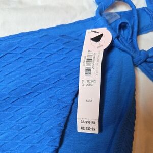 Stylish blue bikini two piece with textured design. Ideal for beach days.top 34A,bottom sz M.