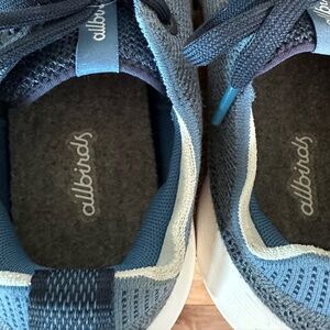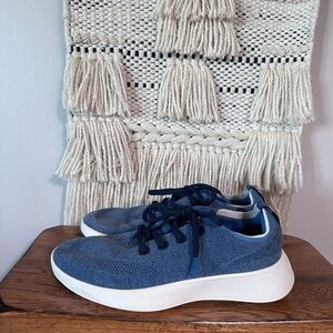 Stylish blue knit sneakers by Allbirds. Comfortable and breathable design. Perfect for everyday wear.