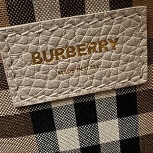 This Burberry medium bucket bag is crafted from luxurious 100% calfskin leather, offering a refined yet modern silhouette. Designed with a clean open-top style and secured by a magnetic closure, it features polished metal hardware and hand-painted edges for an elevated finish. The removable and adjustable shoulder strap adds versatility, allowing it to be worn comfortably on the shoulder or carried by hand. Finished with Burberry embossed lettering on the front, this timeless piece is perfect for everyday elegance.