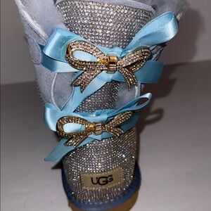 UGG F19010D Blue Bailey Bow II Custom Swarovski Bling Classic Boots Size 10