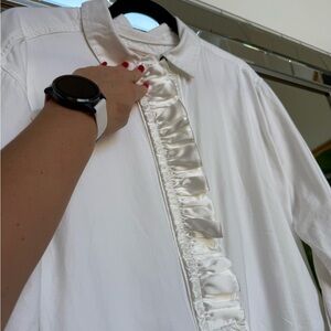 NWOT - never been worn. Gorgeous top! Oversized fit, very elegant twist to the classic white bottom down.