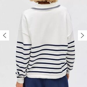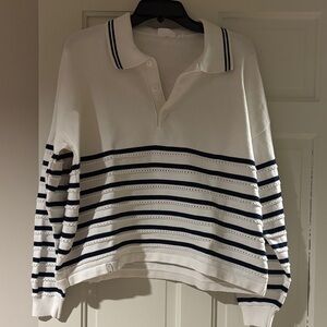 White with navy stripes