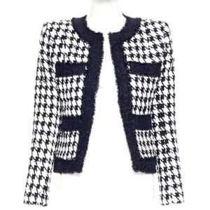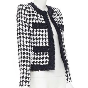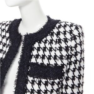BALMAIN black white houndstooth tweed 4 pocket padded cropped jacket FR42
