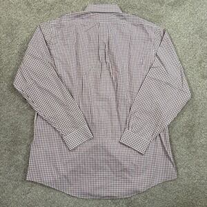 Features a button down collar, long sleeves, and button front closure. Neck and sleeve tag reads 17 6/5, which typically corresponds to a Large fit. Suitable for business casual, office wear, or classic preppy styling.