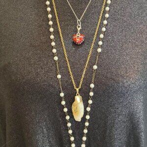 Handcrafted Triple-Strand Necklace with Heart, Crystsl, Cross. Maker has been selected by posh party hosts three times as the host pick!
