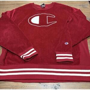 Champion Mens Corduroy Crew Sweatshirt 2XL XXL Maroon Red Logo Cotton Athletic