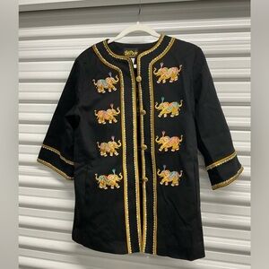 Bob Mackie Black Jacket with Colorful Elephant Embroidery Size XS