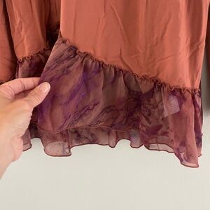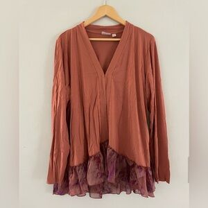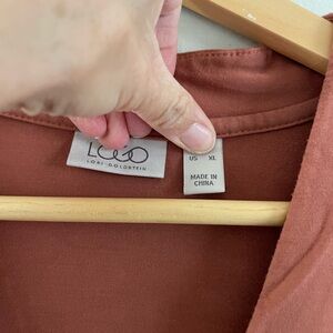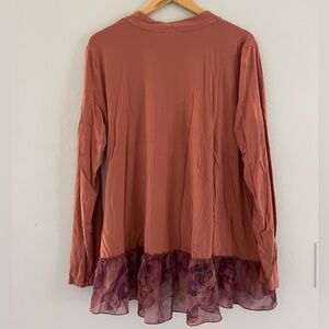 Logo Lori Goldstein brand size xlarge rust orange light weight cardigan with lace trim